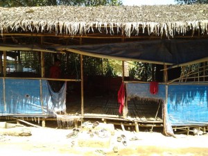 Esta escuela está construida con cañas de bambú artesanalmente, y este invierno ha sido muy azotada por las tormentas y el viento, resultando dañada, siendo su estado actual lamentable.