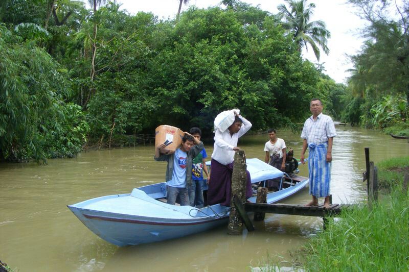 El pasado 17 de Noviembre, nuestro amigo y colaborador Naing Thun, con varios voluntarios y algunos médicos voluntarios (que se unen a nuestro viaje para hacer reconocimiento médico a los niños de las escuelas), se dispusieron para hacer la ruta de los colegios del rio Ayeyarwady, a la zona de Kyait Pi de Mawlamyain Gyun(MawKyun). El viaje de 5 días de duración, rio abajo, se tuvo que quedar en 4, debido a las tormentas y peligrosidad del rio, pero se hicieron las donaciones:
