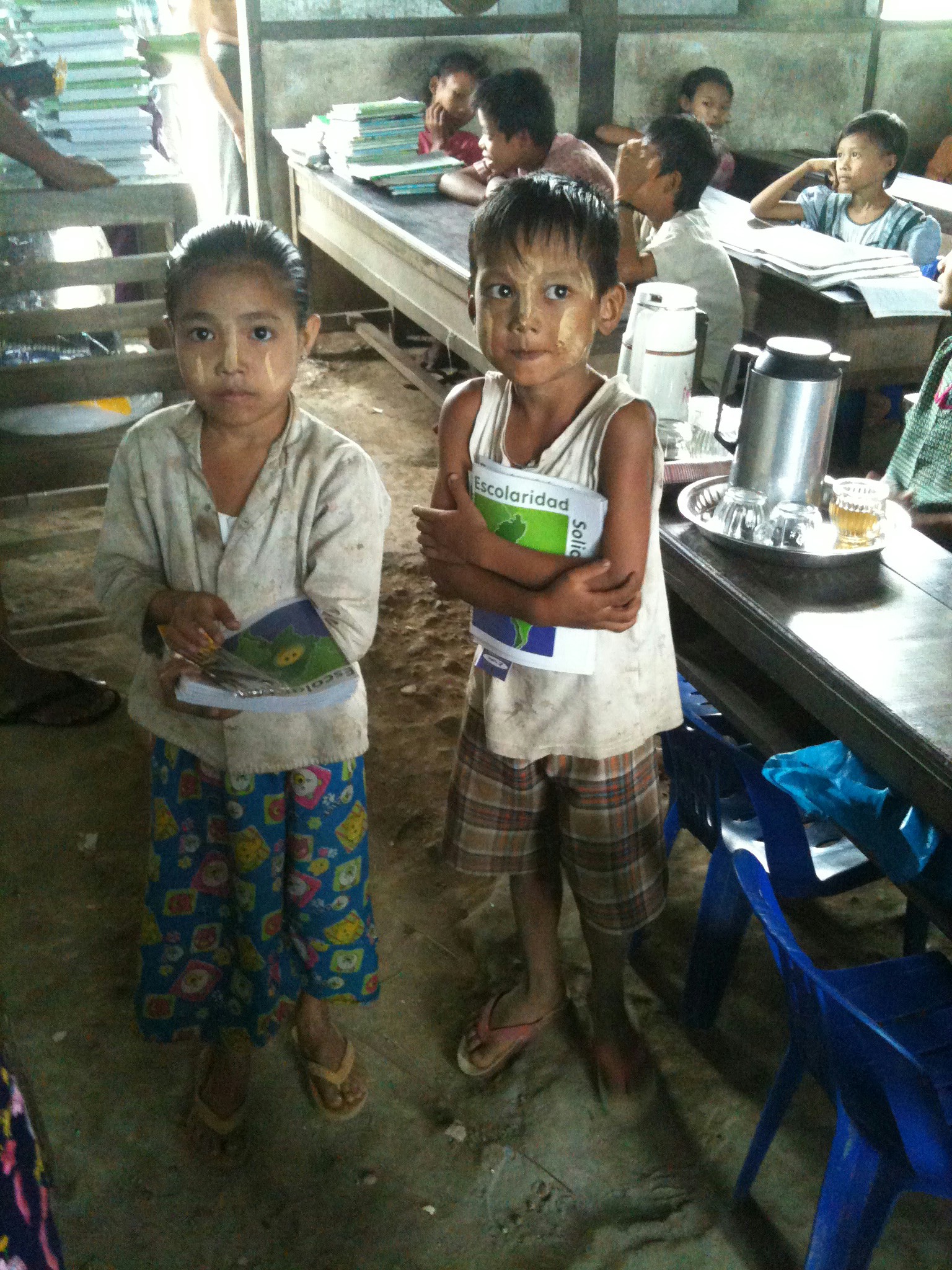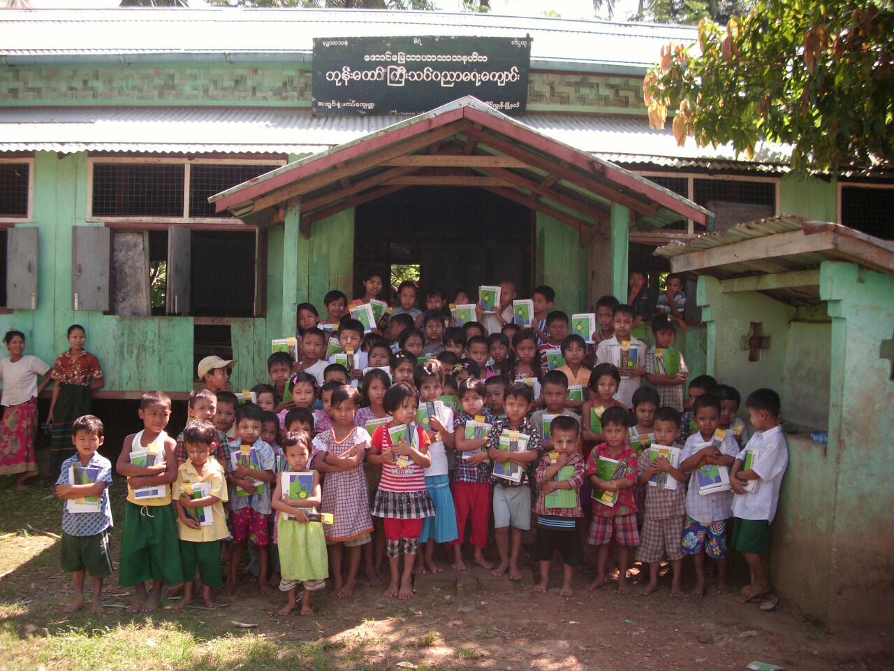 Debido a circunstancias externas a nuestra organización, como los ciclones que azotaron Birmania a mediados de Julio, dejando caminos intransitables, la avería de la máquina en la imprenta que hace las libretas en Yangon, y en los últimos días el terremoto que ha azotado a parte del país, nuestro proyecto ha empezado con un poco de retraso, pero con fuerza como siempre.