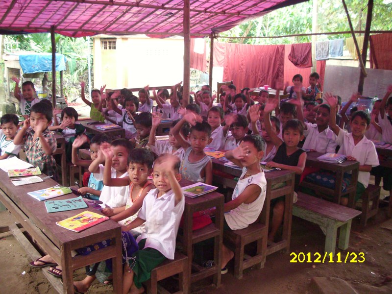 -Escuela Man Pyay(nº 8 del cuadrante) el día 26-11-2012. La que hemos construido este año con tanta satisfacción para todos. Compuesta por 221 alumnos/as.