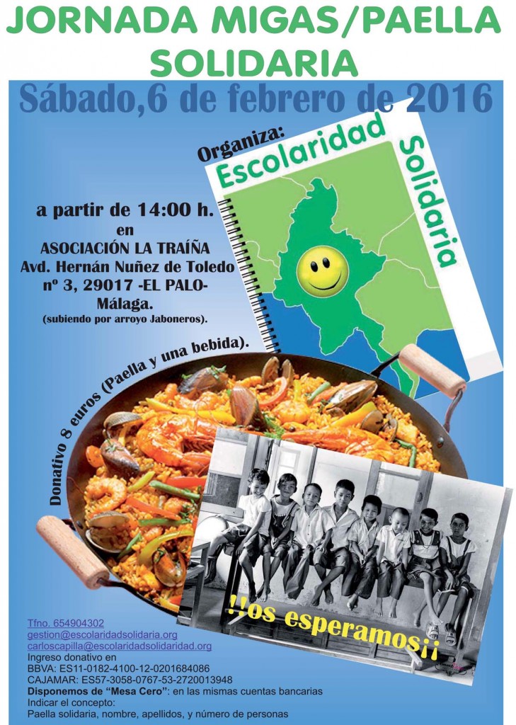 Estimados Amigos y Colaboradores de Escolaridad Solidaria, En poco menos de un mes, tendremos un nuevo evento para compartir y expresar de forma diferente nuestra Solidaridad. Se trata de Las “Migas/Paella Solidaria” Una comida informal entre familia, amigos y conocidos para disfrutar de un día alegre con espíritu y fin solidario. Será el sábado 6 de febrero […]