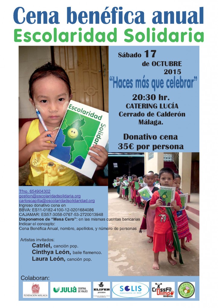 Querido amigo de Escolaridad Solidaria Comunicarte oficialmente la celebración de la próxima Cena Benéfica Anual de Escolaridad Solidaria ONG. Se va a celebrar el próximo sábado 17 de octubre, como en años anteriores en los Salones del “Catering Lucia” sito en Paseo Cerrado de Calderón 19, Málaga, a partir de las 20.30H. Tendremos sorpresas, música en […]