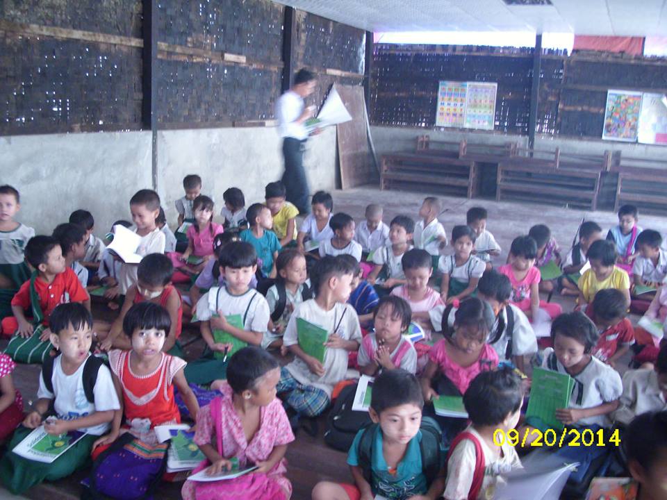 Donaciones en ocho escuelas del Delta de rio Ayeyawaddy, Birmania 10-2014